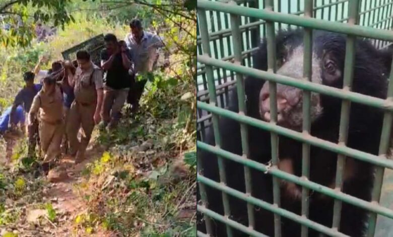 കാലില്‍ ആന ചവിട്ടിയുള്ള പരിക്ക്; അട്ടപ്പാടി മേലെ ഭൂതയാറില്‍ പിടികൂടിയ കരടിയെ മൃഗശാലയിലേക്ക് മാറ്റി