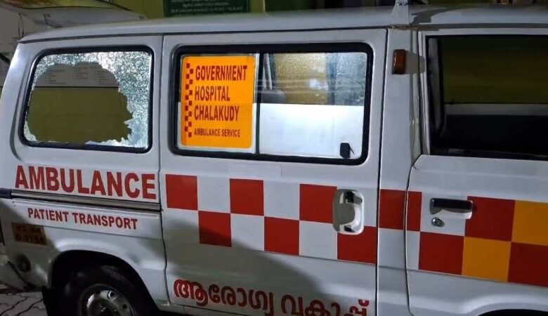 തൃശൂരിൽ രോഗിയുടെ കൂട്ടിരിപ്പുകാരൻ മദ്യലഹരിയിൽ ആംബുലൻസ് അടിച്ചു തകർത്തു