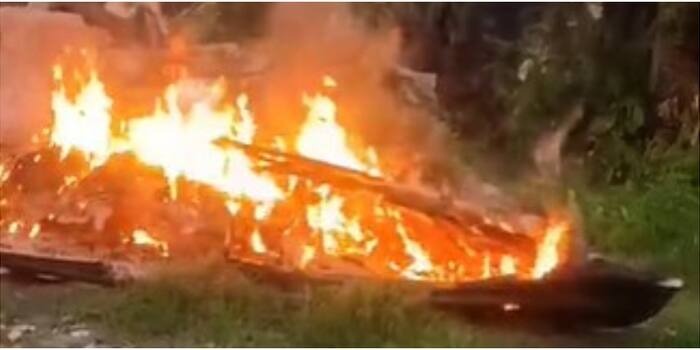 മത്സ്യ ബന്ധനം കഴിഞ്ഞ് കരയിൽ കയറ്റിയ ചെറുവള്ളം കത്തിയ നിലയിൽ
