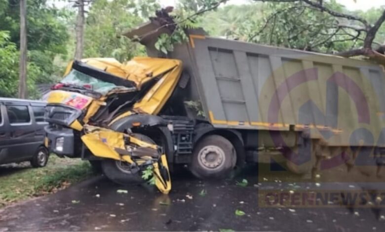 ഇരിട്ടി മൈലാടും പാറയിൽ ടിപ്പർ ലോറി മരത്തിലിടിച്ച് അപകടം; ഡ്രൈവർക്ക്‌ പരിക്ക്