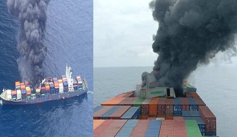 കണ്ണൂര് അഴീക്കൽ തീരത്തിന് സമീപം ചരക്ക് കപ്പലിന് തീപിടിച്ചു; 50 കണ്ടെയ്നറുകള് കടലിൽ വീണു, 40 ജീവനക്കാരെ രക്ഷിക്കാൻ ശ്രമം