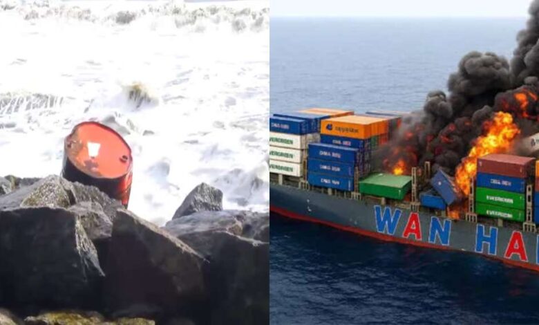കൊല്ലം തീരത്ത് ഭാഗികമായി കത്തിയ ബാരല്‍ അടിഞ്ഞു; വാന്‍ഹായ് കപ്പലിലേതെന്ന് സംശയം