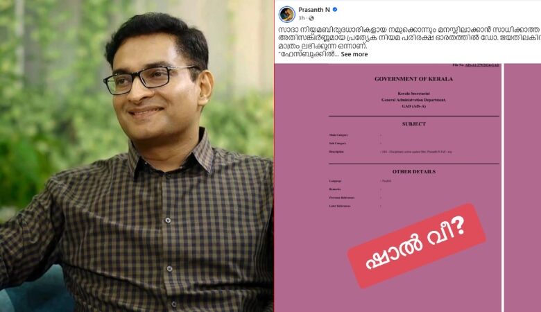 ‘സസ്പെന്ഷന് പിന്നില് നടന്നത് പുറത്തുവിടും ‘; ചീഫ് സെക്രട്ടറി എ.ജയതിലകിനെതിരെ കടുത്ത വിമര്ശനവുമായി എന് പ്രശാന്ത്