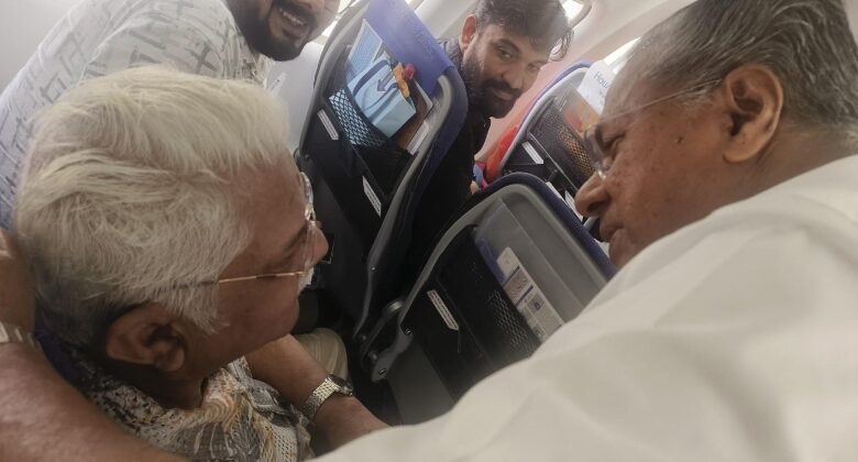 വിമാനയാത്രയ്ക്കിടെ മലയാളത്തിൻ്റെ അതുല്യ നടൻ ജഗതി ശ്രീകുമാറിനെ കണ്ടുമുട്ടി മുഖ്യമന്ത്രി പിണറായി വിജയൻ. ഇന്ന് രാവിലെ തിരുവനന്തപുരത്തുനിന്ന് എറണാകുളത്തേക്കുള്ള വിമാനയാത്രയ്ക്കിടയിലാണ് മുഖ്യമന്ത്രി ജഗതി ശ്രീകുമാറിനെ കണ്ടുമുട്ടിയത്.ജഗതിയുടെ സമീപത്തെത്തി മുഖ്യമന്ത്രി പിണറായി വിജയൻ സുഖവിവരങ്ങൾ അന്വേഷിച്ചു. അദ്ദേഹത്തോടൊപ്പമുള്ള ചിത്രവും ഫേസ്ബുക്കിൽ പങ്കുവച്ചു. ”ഇന്ന് എറണാകുളത്തേക്കുള്ള യാത്രക്കിടെ മലയാളത്തിന്റെ അതുല്യനടൻ ജഗതി ശ്രീകുമാറിനെ കണ്ടുമുട്ടി. സുഖവിവരങ്ങൾ അന്വേഷിച്ചു”- മുഖ്യമന്ത്രി ഫേസ്ബുക്കിൽ കുറിച്ചു.