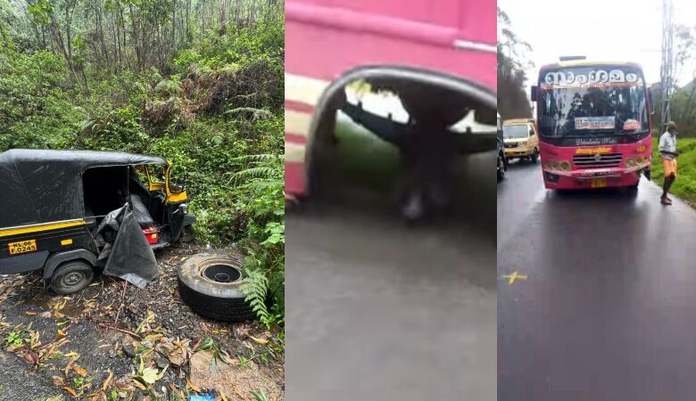 മൂന്നാറിൽ ഓടിക്കൊണ്ടിരുന്ന ബസ്സിന്റെ ടയർ ഊരി തെറിച്ചു