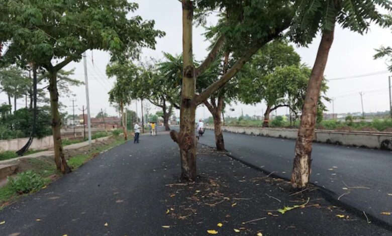‘100 കോടിയുടെ റോഡാണത്രെ!’ നടുക്കുള്ള മരങ്ങൾ പോലും വെട്ടാതെ ജില്ലാ ഭരണകൂടത്തിൻ്റെ ‘ആത്മാർത്ഥത’; വ്യാപക വിമർശനം