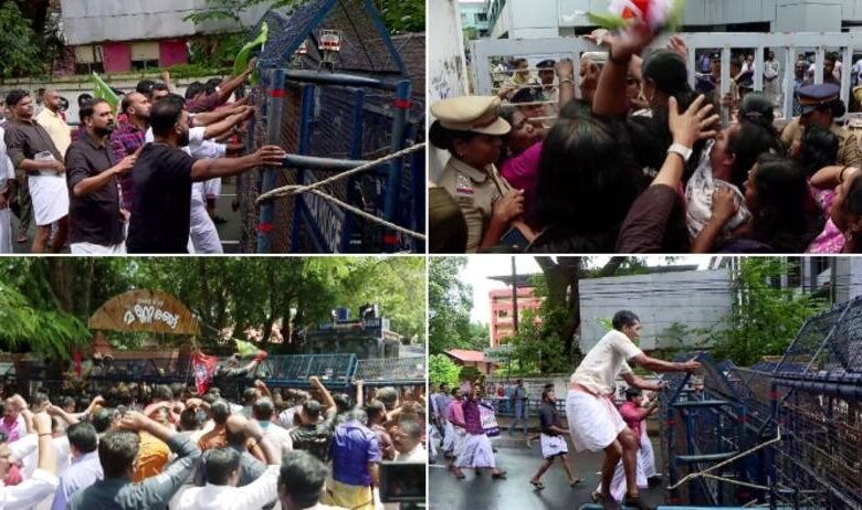 ആരോഗ്യമന്ത്രിയുടെ രാജിയാവശ്യപ്പെട്ട് സംസ്ഥാന വ്യാപക പ്രതിഷേധം, തെരുവിലിറങ്ങി പ്രതിഷേധക്കാർ, സംഘർഷം; ലാത്തി, ജലപീരങ്കി