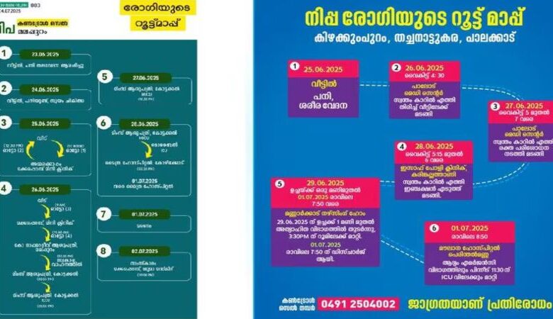 നിപ: പാലക്കാട്, മലപ്പുറം ജില്ലകളിലെ രോഗികളുടെ റൂട്ട് മാപ്പ് പ്രസിദ്ധീകരിച്ചു