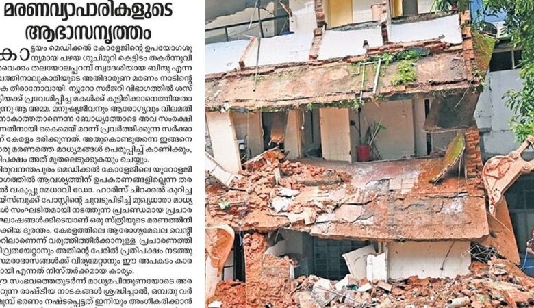 ഈ സംഭവത്തെതുടര്ന്ന് മാധ്യമപിന്തുണയോടെ അരങ്ങേറുന്ന രാഷ്ട്രീയ നാടകങ്ങള് ശ്രദ്ധിച്ചാല്, ഒമ്പതു വര്ഷംമുമ്പ് ഭരണം നഷ്ടപ്പെട്ടത് ഇനിയും അംഗീകരിക്കാന് കഴിയാത്ത അധികാരദുര്മോഹികളുടെ ഗൂഢശ്രമങ്ങള് കാണാം. പ്രധാനമായും രണ്ട് ലക്ഷ്യമാണ് ബഹളങ്ങള്ക്ക് പിന്നിലുള്ളത്. ഒന്ന്, കേരളത്തിലെ ആരോഗ്യരംഗം തകര്ന്നെന്ന് വരുത്തിത്തീര്ത്ത് രാഷ്ട്രീയ മുതലെടുപ്പ് നടത്തുക. ആരോഗ്യമന്ത്രിയുടെ രാജി ആവശ്യപ്പെട്ടുള്ള സമരനാടക ങ്ങള്ക്കു പിന്നില് മറ്റൊരു ഗൂഢാലോചനകൂടിയുണ്ട്. സൗജന്യ ചികിത്സ നല്കുന്ന ഇത്തരം ആതുരാലയങ്ങളെ തകര്ത്ത് സ്വകാര്യ ആശുപത്രികളുടെ ചൂഷണത്തിനായി സാധുമനുഷ്യരെ എറിഞ്ഞുകൊടുക്കുകയെന്ന മനുഷ്യത്വഹീനമായ ലക്ഷ്യം – എഡിറ്റോറിയലില് പറയുന്നു.