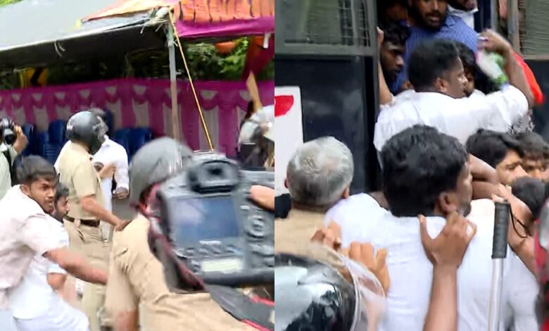 ആരോഗ്യമന്ത്രിക്കെതിരെ യൂത്ത് കോൺഗ്രസ് പ്രതിഷേധം; വിവിധയിടങ്ങളിൽ സംഘർഷം; പ്രവർത്തകർക്ക് നേരെ പൊലീസ് ലാത്തി വീശി