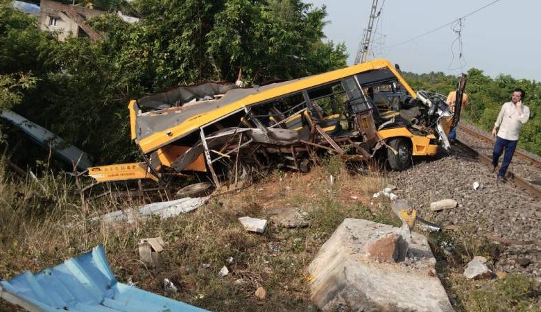 തമിഴ്നാട്ടിൽ സ്കൂൾ ബസ് ട്രെയിനിൽ ഇടിച്ച് അപകടം; കുട്ടികൾ ഉൾപ്പെടെ അഞ്ച് പേർക്ക് ദാരുണാന്ത്യം
