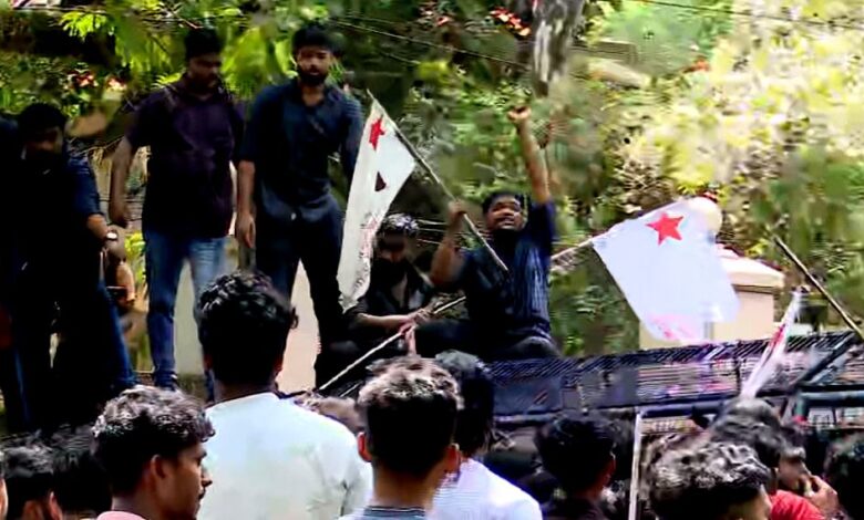 ജലപീരങ്കിയിലെ വെള്ളം തീർന്നു; ഗ്രനേഡ് മുന്നറിയിപ്പ് അവഗണിച്ച് രാജ്ഭവന് മുന്നിലെ സമരം തുടർന്ന് എസ്എഫ്ഐ