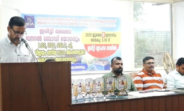 ബാറ്ററി ഡീലേഴ്സ് ആന്ഡ് ഡിസ്ട്രിബ്യൂട്ടേഴ്സ് അസോസിയേഷന്; ജനറല്ബോഡി യോഗവും അനുമോദനവും സംഘടിപ്പിച്ചു