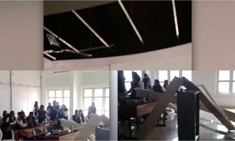 ക്ലാസ് നടക്കുന്നതിനിടയിൽ ലോ കോളേജിലെ ക്ലാസ് മുറിയിലെ സീലിങ് തകര്ന്ന് വീണു; വിദ്യാര്ത്ഥികള് പരിക്കേൽക്കാതെ രക്ഷപ്പെട്ടത് തലനാരിഴക്ക്