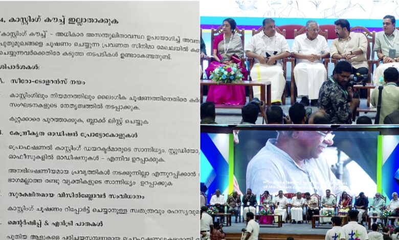 കാസ്റ്റിംഗ് കൗച്ച് ഇല്ലാതാക്കണം,ഓഡിഷന് കേന്ദ്രീകൃത പ്രോട്ടോക്കോൾ വേണം, സിനിമ മേഖലയിൽ ഏകീകൃത പെരുമാറ്റ ചട്ടം വേണം,സിനിമാ നയ രൂപീകരണ കരട് പുറത്ത്
