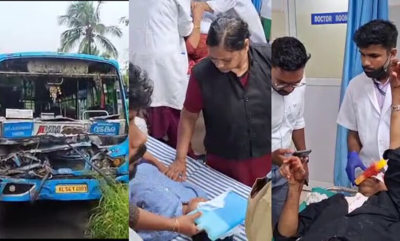 സ്വകാര്യ ബസുകള്‍ തമ്മിൽ മത്സരയോട്ടം; ഇരിങ്ങലിൽ ബസിന് പിന്നിലേക്ക് മറ്റൊരു ബസ് ഇടിച്ചുകയറി അപകടം, വിദ്യാര്‍ത്ഥിയടക്കം 20 പേര്‍ക്ക് പരിക്ക്