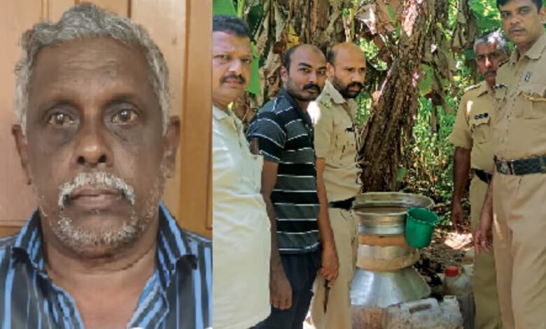ഓണം കൊഴുപ്പിക്കാൻ വാറ്റ്, കൊല്ലത്ത് 13 ലിറ്റർ ചാരായവുമായി 62കാരൻ പിടിയിൽ, പുലിയൂരിൽ കുറ്റിക്കാട്ടിൽ ഒളിപ്പിച്ചത് 385 ലിറ്റർ കോട