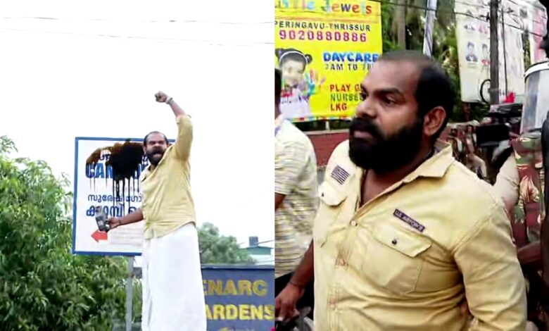വോട്ടർ പട്ടിക ക്രമക്കേട് വിവാദം; സുരേഷ് ഗോപിയുടെ ഓഫീസ് ബോർഡിൽ കരിഓയിൽ ഒഴിച്ചയാൾ പിടിയിൽ