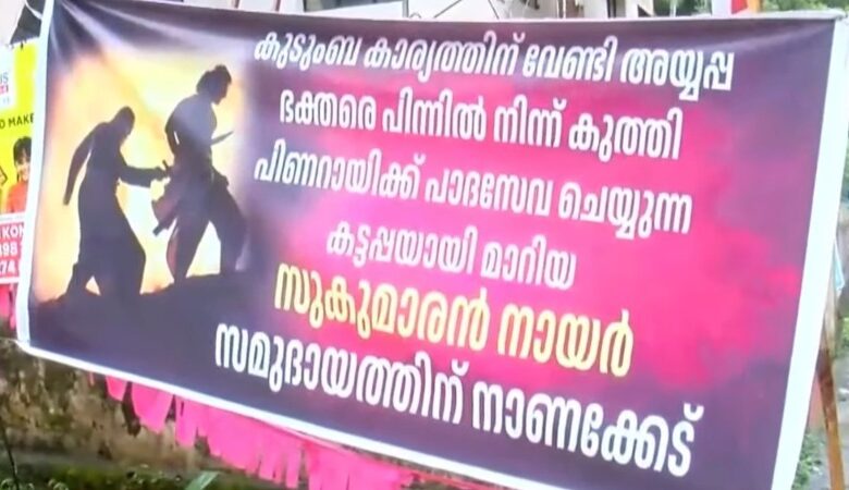 ‘ഭക്തരെ പിന്നില്‍ നിന്ന് കുത്തിയ കട്ടപ്പ’; ജി സുകുമാരന്‍ നായര്‍ക്കെതിരെ പത്തനംതിട്ടയില്‍ വീണ്ടും പ്രതിഷേധബാനര്‍