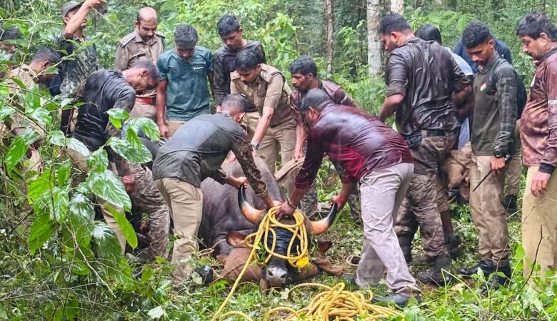 തുടർന്ന് വെറ്ററിനറി ഡോക്ടർ ഇല്യാസിന്റെ നേതൃത്വത്തിലുള്ള സംഘമാണ് ഇന്ന് ഉച്ചയ്ക്ക് 12 മണിയോടെ കാട്ടുപോത്തിനെ മയക്കുവെടി വച്ച് പിടികൂടിയത്. വനംവകുപ്പ് ഉദ്യോഗസ്ഥരും വെറ്ററിനറി സർജനും സ്ഥലത്ത് സന്നിഹിതരായിരുന്നു.