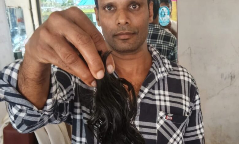 കീമോ ചെയ്ത രോഗികൾക്ക് കേശം ദാനം ചെയ്ത് പെരുവ സ്വദേശി പ്രമോദ്