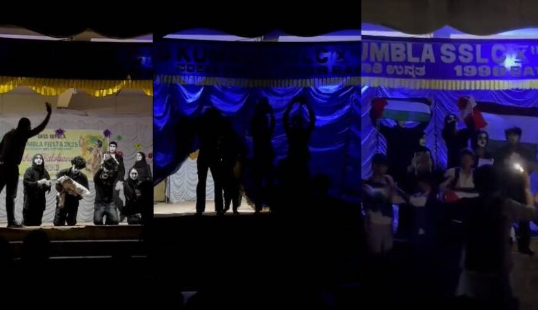 അധ്യാപകർ ദേശീയ അധ്യാപക പരിഷത്ത് അംഗങ്ങളാണ്. അധ്യാപകരായ പ്രദീപ് കുമാർ, സുപ്രീത് എന്നിവരാണ് കർട്ടൻ താഴ്ത്തിയത്. നിർത്തിവെച്ച കലോത്സവം തിങ്കളാഴ്ച വീണ്ടും നടത്തും. പലസ്തീനിലെ കുഞ്ഞുങ്ങൾക്കൊപ്പമാണ് കേരളമെന്നും ഇതേ മൈം വേദിയിൽ അവതരിപ്പിക്കാൻ അനുമതി നൽകുമെന്നും വിദ്യാഭ്യാസ മന്ത്രി വ്യക്തമാക്കിയിരുന്നു. മുടങ്ങിയ കലോത്സവം തിങ്കളാഴ്ച്ച വീണ്ടും നടത്തും. പലസ്തീനിൽ ഇസ്രയേൽ നടത്തുന്ന കൂട്ടക്കുരുതിയാണ് സ്കൂളിലെ പ്ലസ്ടു വിദ്യാർഥികൾ പ്രമേയമാക്കിയത്.