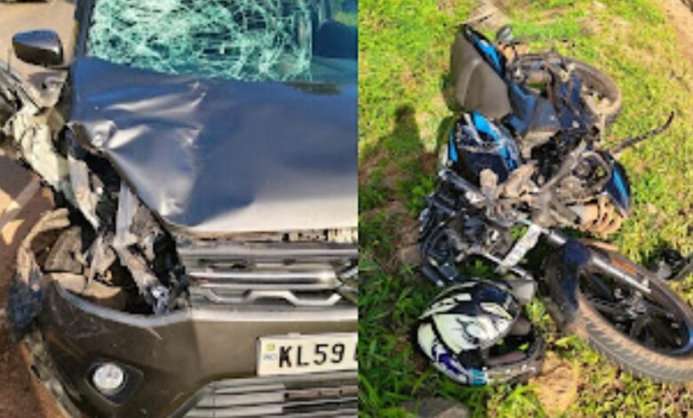 കേളകം ഇരട്ടത്തോട്ടിൽ വാഹനാപകടം;ബൈക്ക് യാത്രികന് പരിക്ക്