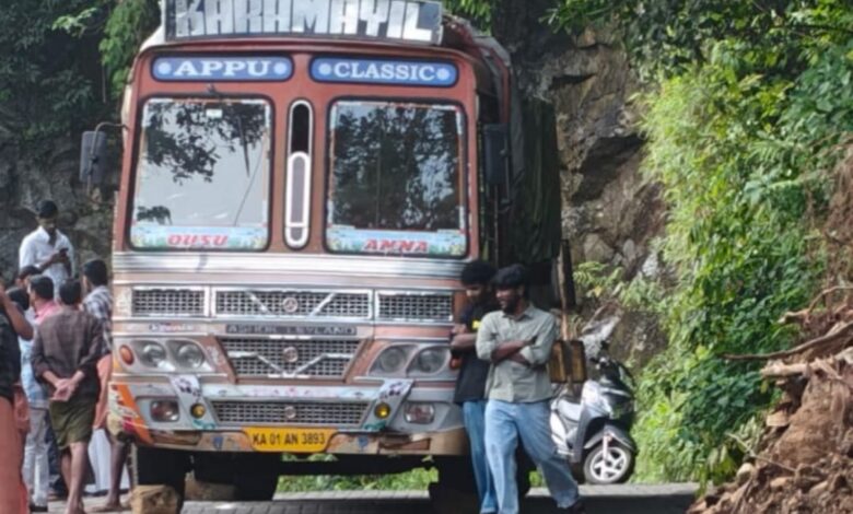 പാൽച്ചുരത്ത് ലോറി കുടുങ്ങി ഗതാഗത തടസ്സം