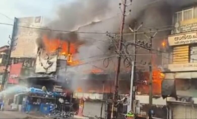 തളിപ്പറമ്പിൽ വൻ തീപ്പിടുത്തം; 10 കടകളിലേക്ക് തീപടര്ന്നു, കൂടുതല് ഫയര്ഫോഴ്സ് സംഘം സ്ഥലത്തേക്ക്