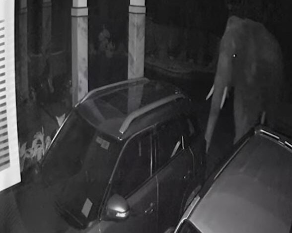 കൂട്ടുപുഴ പേരട്ടയിൽ കാട്ടാന വീട്ടുമുറ്റത്ത്