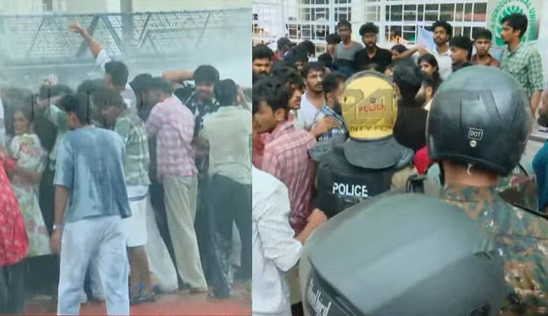 കാർഷിക വകുപ്പിനെതിരെ സമരവുമായി എസ്എഫ്ഐ; സംഘർഷം, AISF നും AIYFനും പരിഹാസം