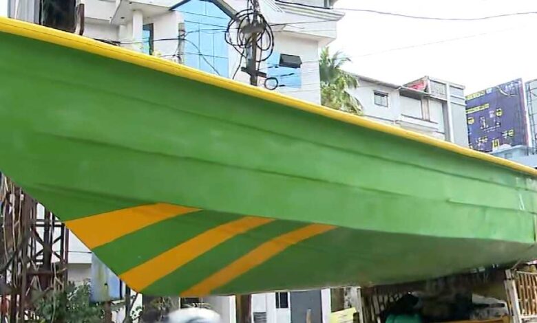 ഫൈബർ വള്ളം പിക്കപ്പ് വാന് മുകളിൽവെച്ചുകെട്ടി തിരുനെൽവേലിയിൽനിന്ന് ബേപ്പൂരിലേക്ക് അപകടകരമായ യാത്ര;പിഴയിട്ട് MVD