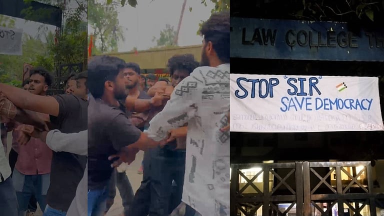 എസ്ഐആറുമായി ബന്ധപ്പെട്ട ബാനർ കെട്ടി; തൃശൂർ ലോ കോളേജിൽ എസ്എഫ്ഐ-കെഎസ്യു സംഘർഷം; ചെയർമാനുൾപ്പെടെ പരിക്ക്