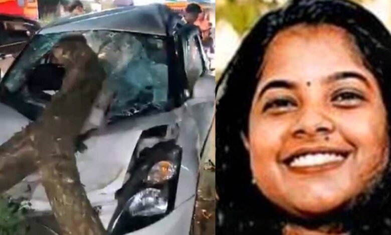 കണ്ടെയ്നർ ലോറി തട്ടി പൊട്ടിവീണ മരക്കൊമ്പ് കാറിനുള്ളിൽ തുളച്ചു കയറി, 27കാരിക്ക് ദാരുണാന്ത്യം