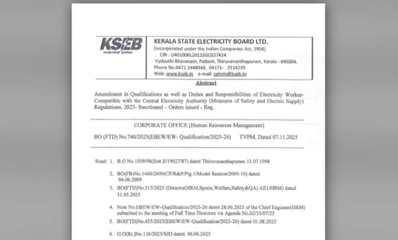 കെഎസ്ഇബി മസ്ദൂർ നിയമനത്തിൽ യോഗ്യത മാറ്റി; ഇനി വനിതകൾക്കും അപേക്ഷിക്കാമെന്ന് കേന്ദ്ര ഇലക്ട്രിസിറ്റി അതോറിറ്റി