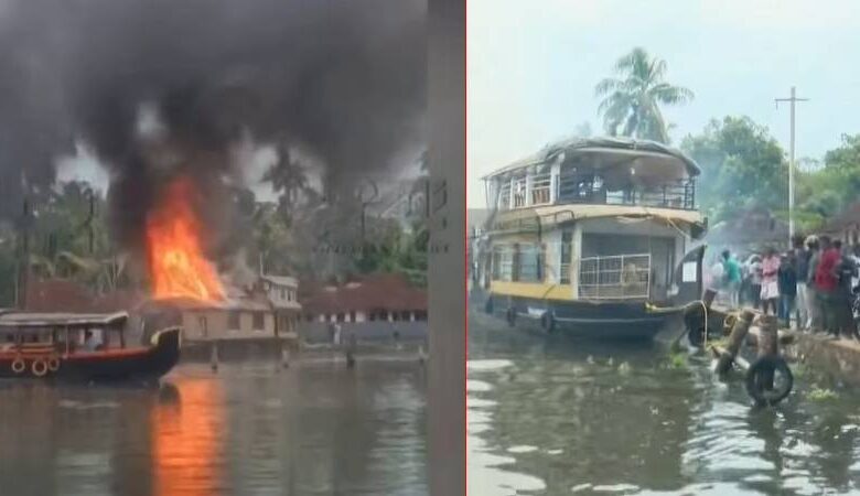 പുന്നമടയിൽ ഹൗസ്ബോട്ടിന് തീപിടിച്ചു; തീയണക്കാൻ ശ്രമം തുടരുന്നു