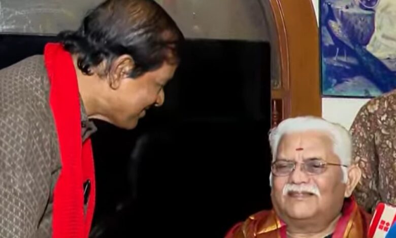 ‘രാമാ ശ്രീരാമാ’ പാടി ജഗതിയോട് വോട്ടുതേടി പൂജപ്പുര രാധാകൃഷ്ണൻ; മുഖത്ത് അമ്പിളിപ്പുഞ്ചിരി