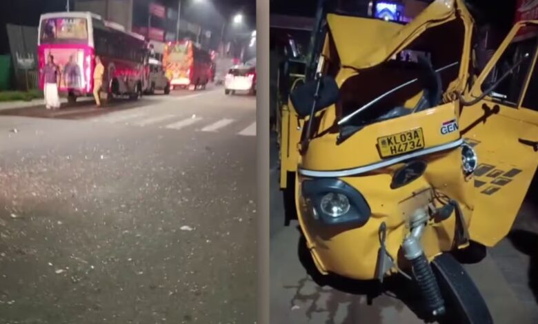കുമ്പഴയിൽ ശബരിമല തീർഥാടകർ സഞ്ചരിച്ച ബസും പെട്ടി ഓട്ടോറിക്ഷയും കൂട്ടിയിടിച്ചു; ഓട്ടോയിലുണ്ടായിരുന്നവർക്ക് ഗുരുതര പരിക്ക്