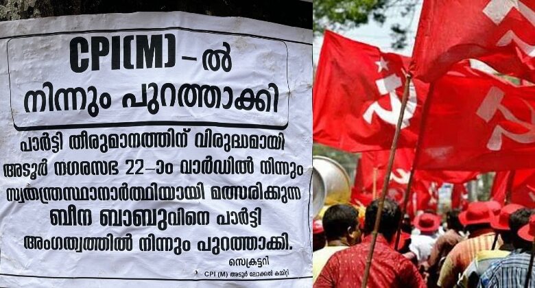 സ്ഥാനാർത്ഥിത്വം പിൻവലിക്കാൻ തയ്യാറായില്ല; അടൂരിൽ 2 വിമത സ്ഥാനാർത്ഥികളെ പുറത്താക്കി സിപിഐഎം