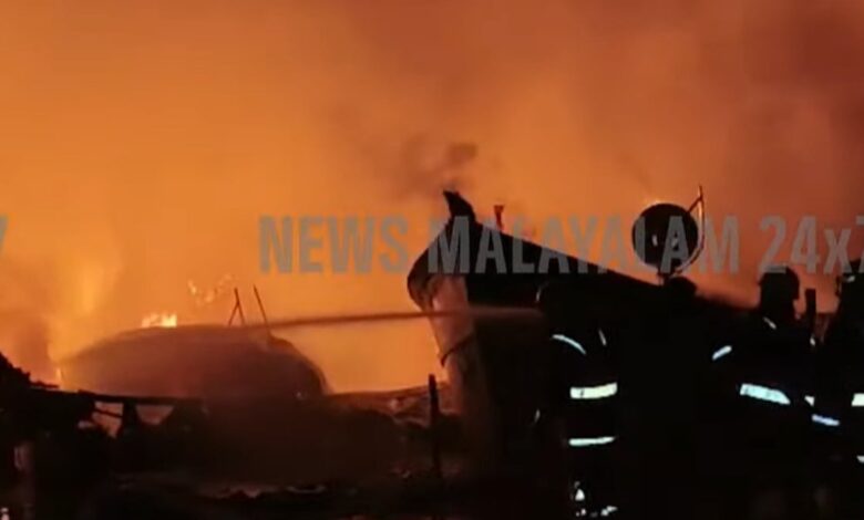 കൊല്ലത്ത് വൻ തീപിടിത്തം; ബോട്ടിലെ ഗ്യാസ് സിലിണ്ടർ പൊട്ടിത്തെറിച്ചതെന്ന് നിഗമനം