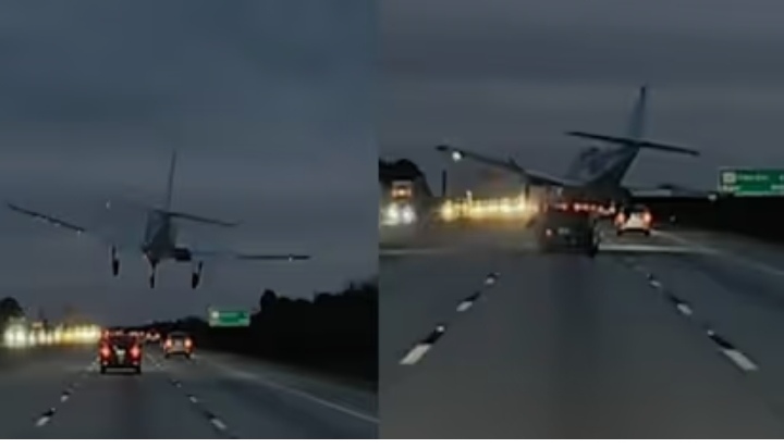 ഞെട്ടിക്കുന്ന ദൃശ്യങ്ങൾ, ഓടിക്കൊണ്ടിരിക്കുന്ന കാറിന് മുകളിൽ വിമാനത്തിന്റെ ലാൻഡിങ്, പിന്നെ നേരെ റോഡിലേക്ക്