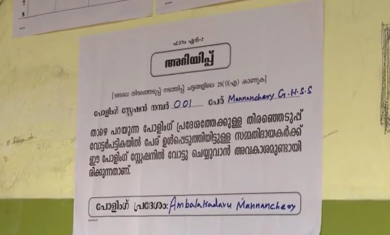 ആലപ്പുഴ മണ്ണഞ്ചേരിയിൽ ഇന്ന് റീപോളിങ്; തെരഞ്ഞെടുപ്പ് ഡ്യൂട്ടിക്ക് പുതിയ ഉദ്യോഗസ്ഥർ