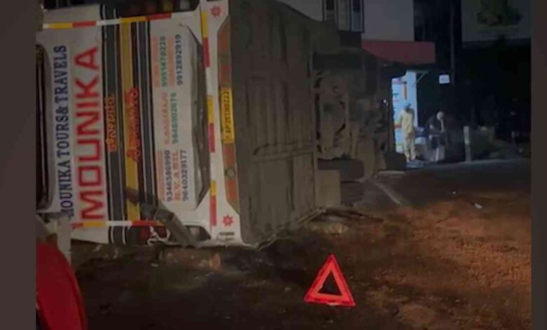 ശബരിമല തീര്ഥാടകര് സഞ്ചരിച്ച ബസ് മറിഞ്ഞു; നാലുപേര്ക്ക് പരുക്ക്, ഒരാളുടെ കാല് അറ്റുപോയി