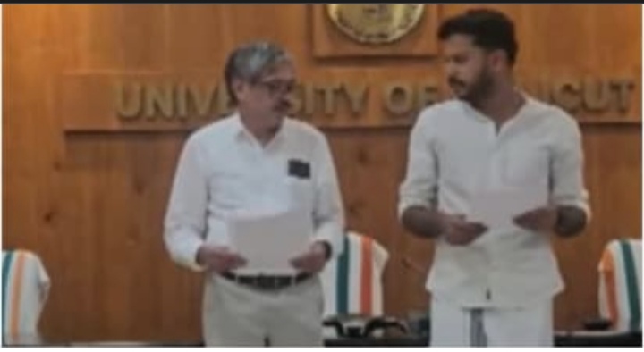 ‘അനശ്വര രക്തസാക്ഷികളുടെ പേരിൽ’ സത്യപ്രതിജ്ഞ പറ്റില്ലെന്ന് വൈസ് ചാൻസലർ, ഇറങ്ങിപ്പോയി; കാലിക്കറ്റ് ഡിഎസ്യു ഭാരവാഹികളുടെ സത്യപ്രതിജ്ഞ റദ്ദാക്കി