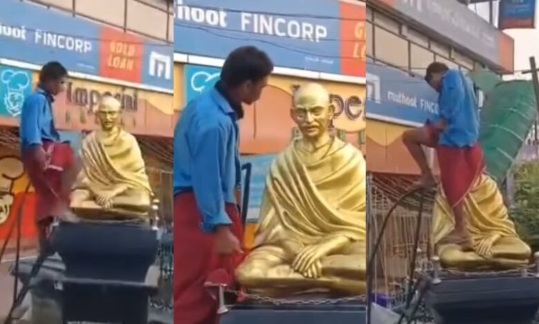 അടിച്ച് ഫിറ്റായി, പുനലൂരിൽ ഗാന്ധി പ്രതിമയ്ക്ക് നേരെ മദ്യപൻ്റെ അതിക്രമം