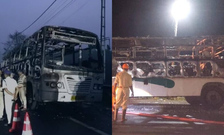 ഇന്ന് പുലർച്ചെയോടെയാണ് സംഭവം. ബസിൽ നിന്ന് പുക ഉയരുന്നത് കണ്ടതോടെ ഡ്രൈവർ വാഹനം നിർത്തി, യാത്രക്കാരെ പുറത്തിറക്കി. ഇത് വലിയ അപകടം ഒഴിവാക്കി. 28 യാത്രക്കാരാണ് ബസിൽ ഉണ്ടായിരുന്നത്. ഫയർഫോഴ്സെത്തി തീ അണച്ചു.