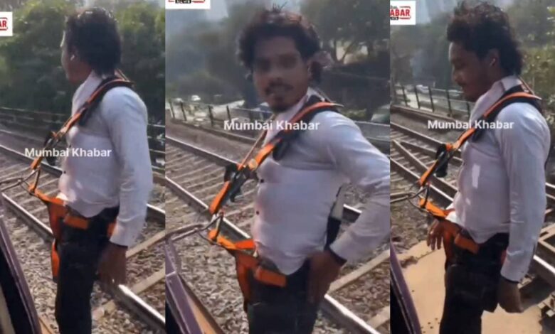 സോഷ്യൽ മീഡിയയിൽ വൈറലാവുന്നതിന് വേണ്ടി സാഹസികപ്രവൃത്തികൾ ചെയ്യുന്ന അനേകങ്ങളെ നാം കാണാറുണ്ട്. അതുപോലെയുള്ള അനേകം വീഡിയോ ഓരോ ദിവസവുമെന്നോണം സോഷ്യൽ മീഡിയയിൽ ശ്രദ്ധിക്കപ്പെടാറുമുണ്ട്. അങ്ങനെ ഒരു വീഡിയോയാണ് ഇപ്പോൾ വലിയ വിമർശനം നേരിട്ടു കൊണ്ടിരിക്കുന്നത്. മുംബൈ ലോക്കൽ ട്രെയിനിൽ ജീവൻ പണയപ്പെടുത്തി അത്യന്തം അപകടകരമായ രീതിയിൽ സാഹസികമായി സഞ്ചരിക്കുന്ന യുവാവിന്റെ വീഡിയോയാണ് സോഷ്യൽ മീഡിയയിൽ വ്യാപകമായി പ്രചരിക്കുന്നത്. ഓടിക്കൊണ്ടിരിക്കുന്ന ട്രെയിനിന്റെ വാതിലിൽ ഒരു ഹാർനെസ്സ് ഉപയോഗിച്ച് സ്വയം ബന്ധിപ്പിച്ച ശേഷം പുറത്തേക്ക് തൂങ്ങിക്കിടക്കുന്ന യുവാവിനെയാണ് വീഡിയോയിൽ കാണുന്നത്.