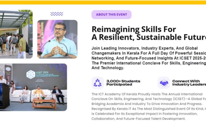 തിരുവനന്തപുരം: കേരള സര്ക്കാര് പിന്തുണയോടെ പ്രവര്ത്തിക്കുന്ന ഐ.സി.ടി. അക്കാദമി ഓഫ് കേരളയുടെ ‘ഇക്സെറ്റ് 2026’ (ICSET) ഒൻപതാം പതിപ്പ് ജനുവരി 13-ന് അങ്കമാലി അഡ്ലക്സ് ഇന്റർനാഷണൽ കൺവെൻഷൻ സെന്ററിലെ മൂന്ന് വേദികളിലായി നടക്കും. ‘സുസ്ഥിരവും ഈടുറ്റതുമായ ഒരു ഭാവിക്ക് വേണ്ടിയുള്ള നൈപുണ്യ പുനർവിഭാവനം’ എന്നതാണ് ഈ കോൺക്ലേവിന്റെ പ്രധാന പ്രമേയം.
