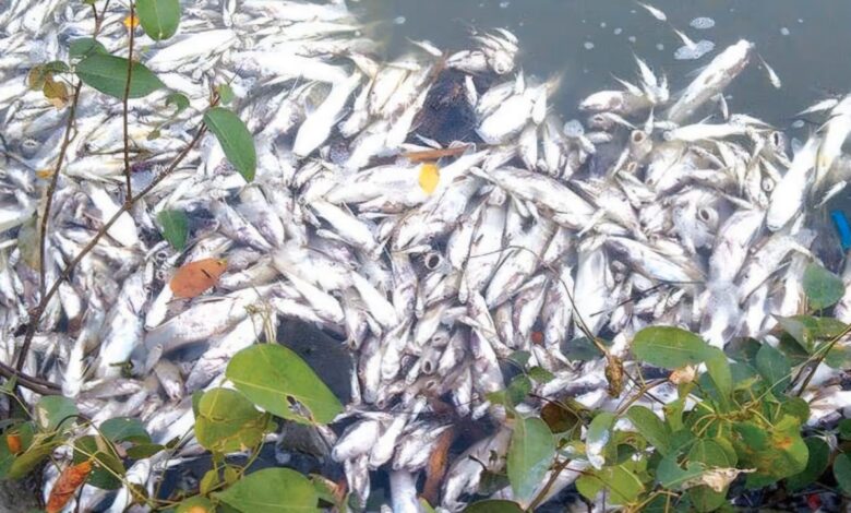 വിഷം കലർത്തിയെന്ന് സംശയം; മത്സ്യകൃഷിക്കായി കരാർ നൽകിയ എട്ടേക്കറോളം വലിപ്പമുള്ള ജലാശയത്തിൽ മീനുകൾ ചത്തുപൊങ്ങി