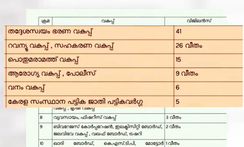 സംസ്ഥാനത്ത് വിജിലന്സ് കേസുകളില് മുന്നില് തദ്ദേശസ്വയംഭരണ വകുപ്പ്; അന്വേഷണം നേരിടുന്നത് 41 ഉദ്യോഗസ്ഥര്